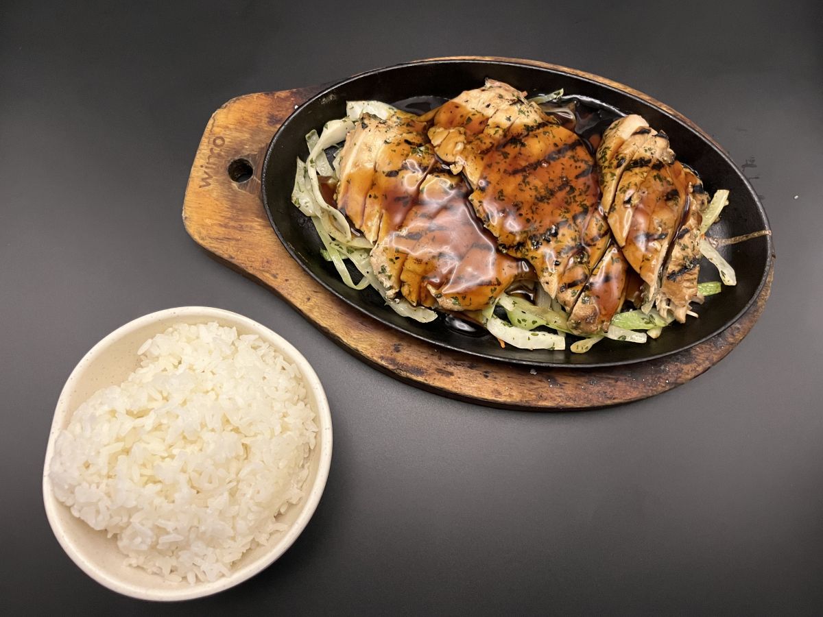 Grilled chicken, vegetables with teriyaki sauce, rice