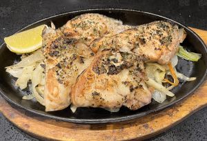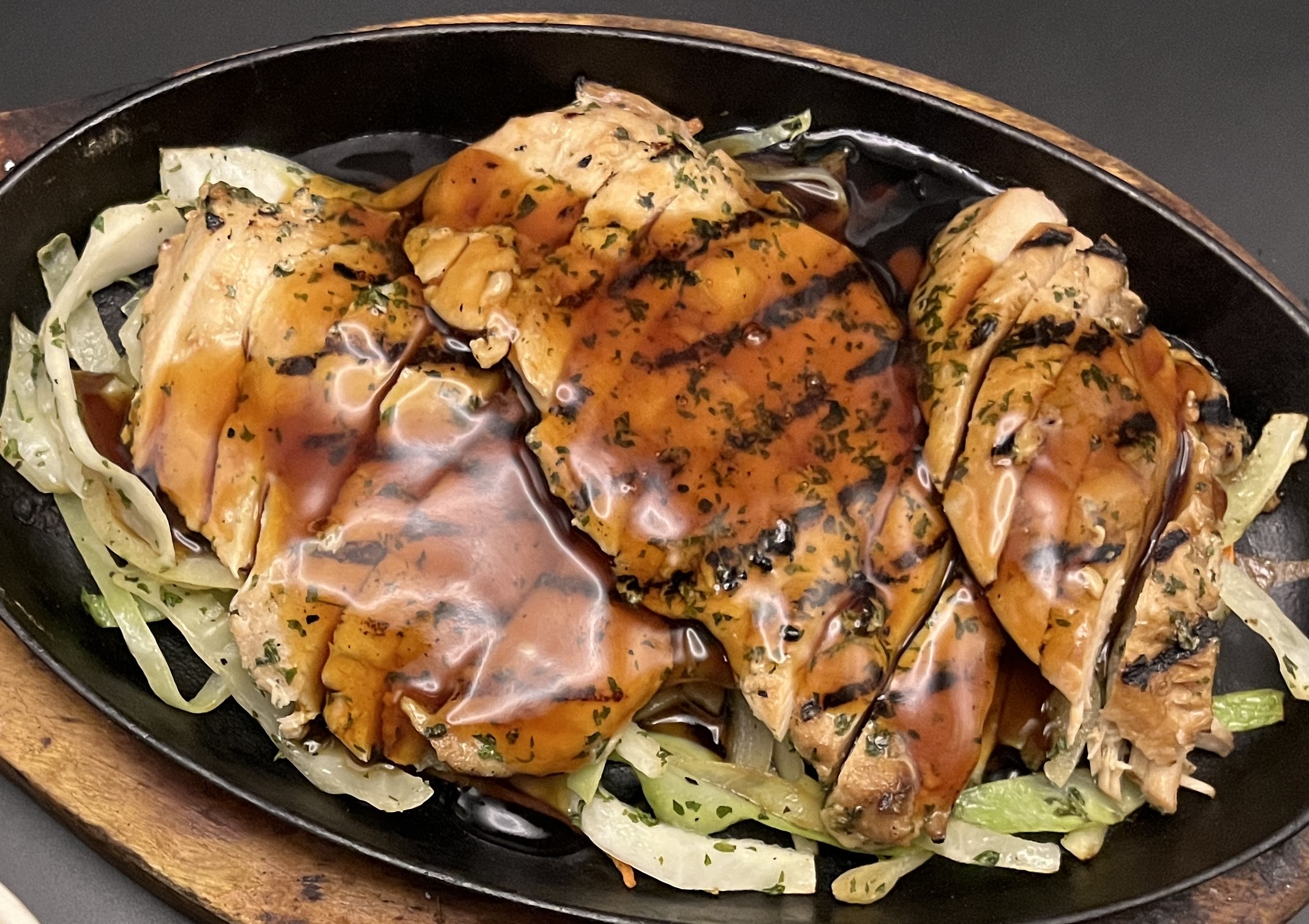 Grilled chicken, vegetables with teriyaki sauce, rice