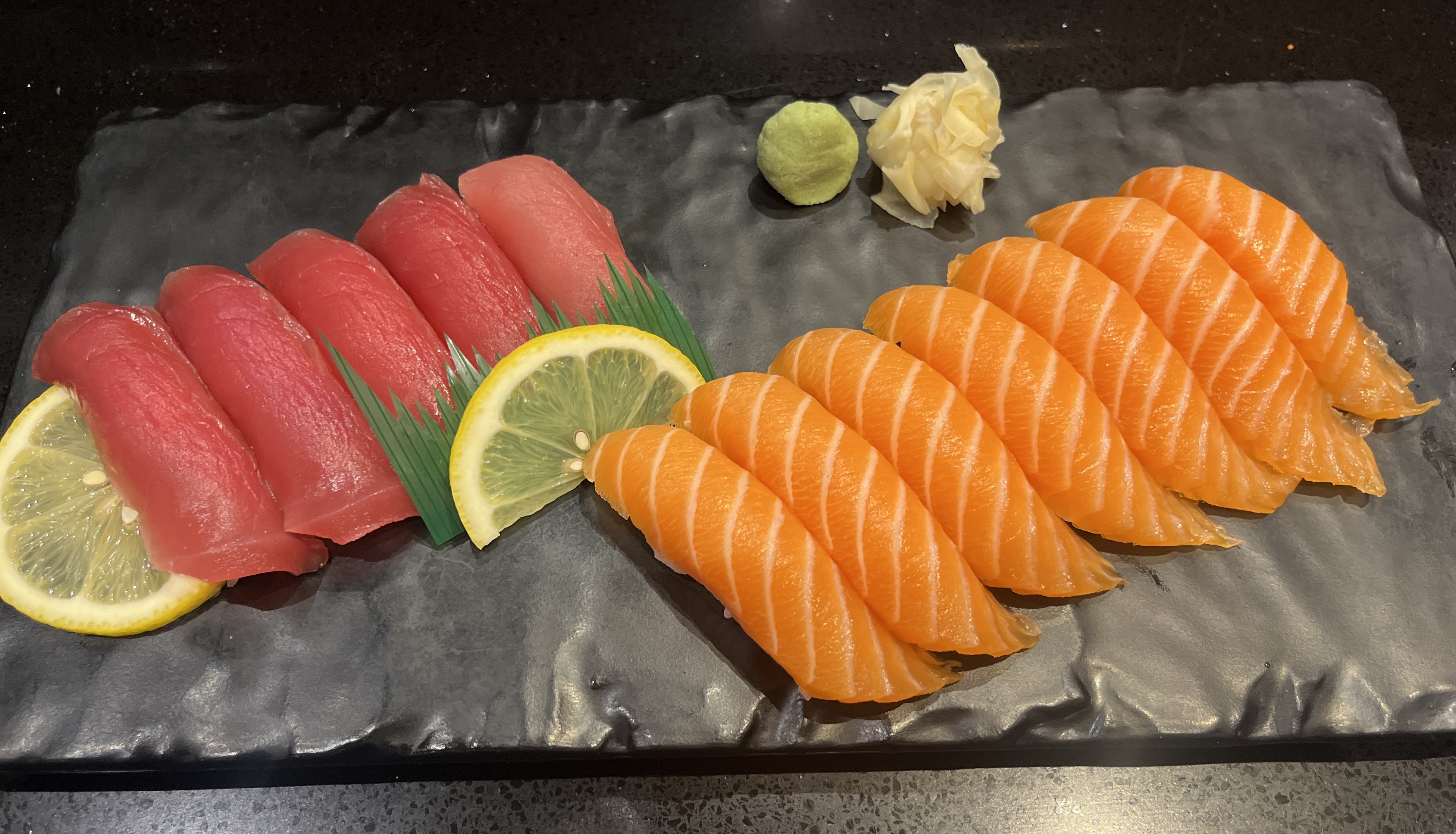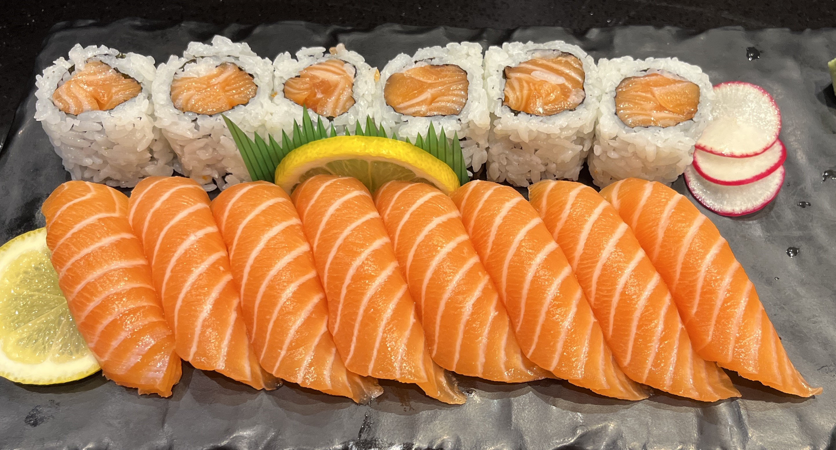5pcs salmon sashimi, 4pcs nigiri sushi, 6pcs California maki