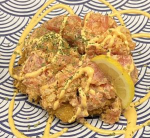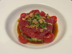 Diced tuna, avocado, tomato with garlic ponzu drizzle