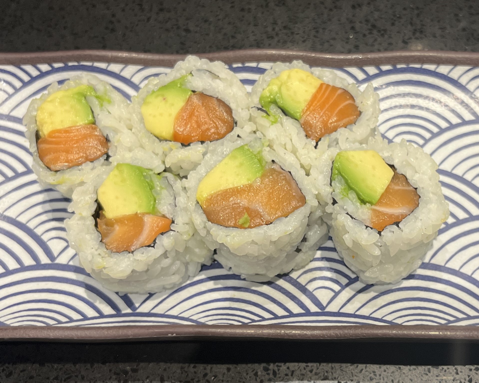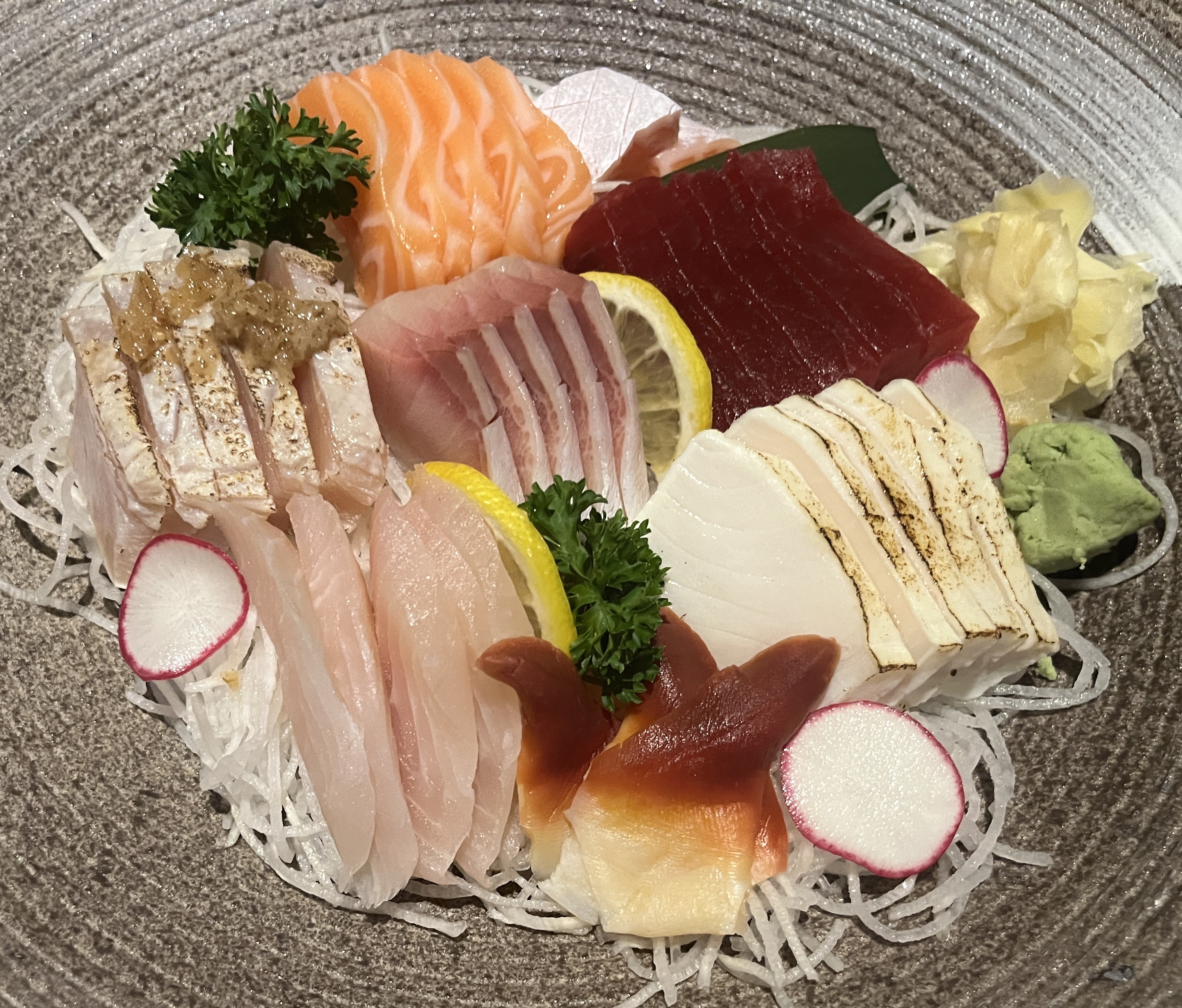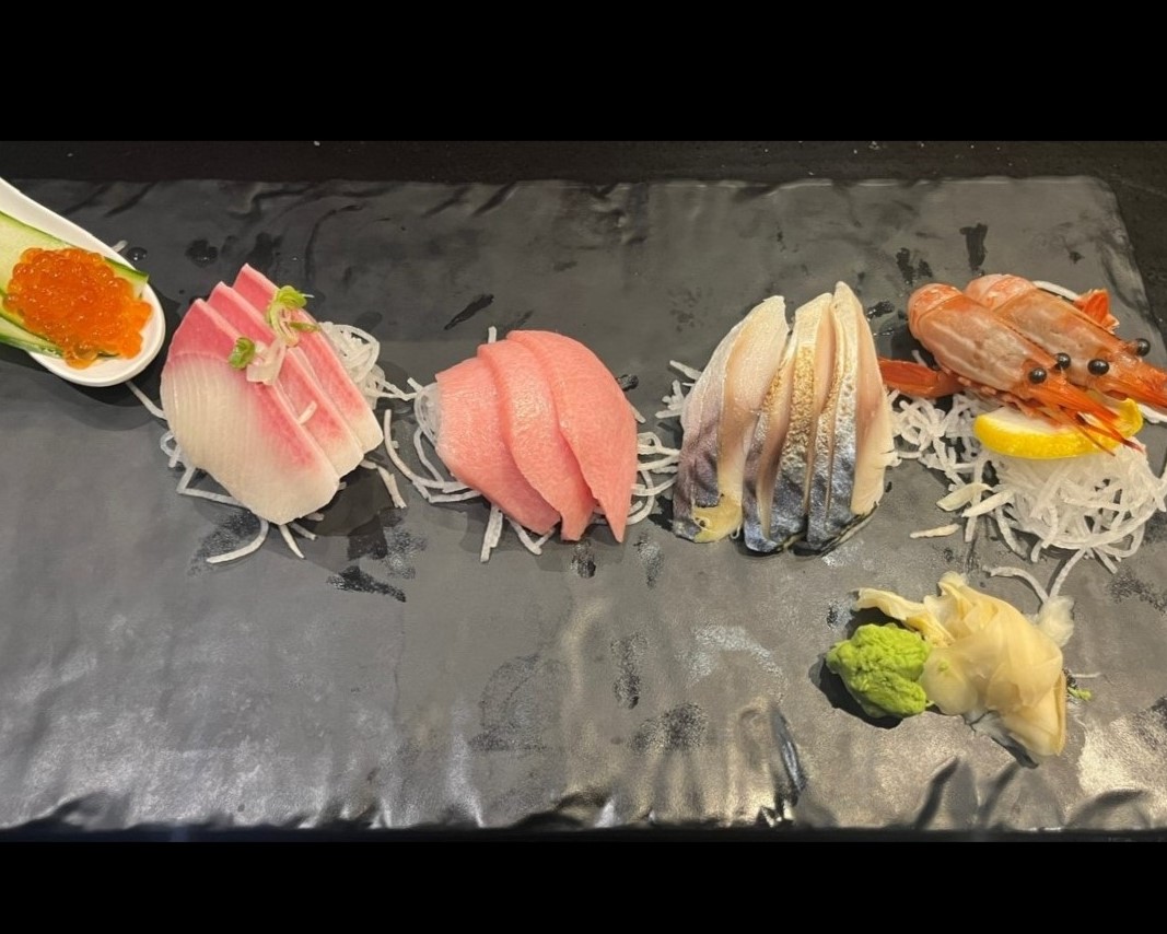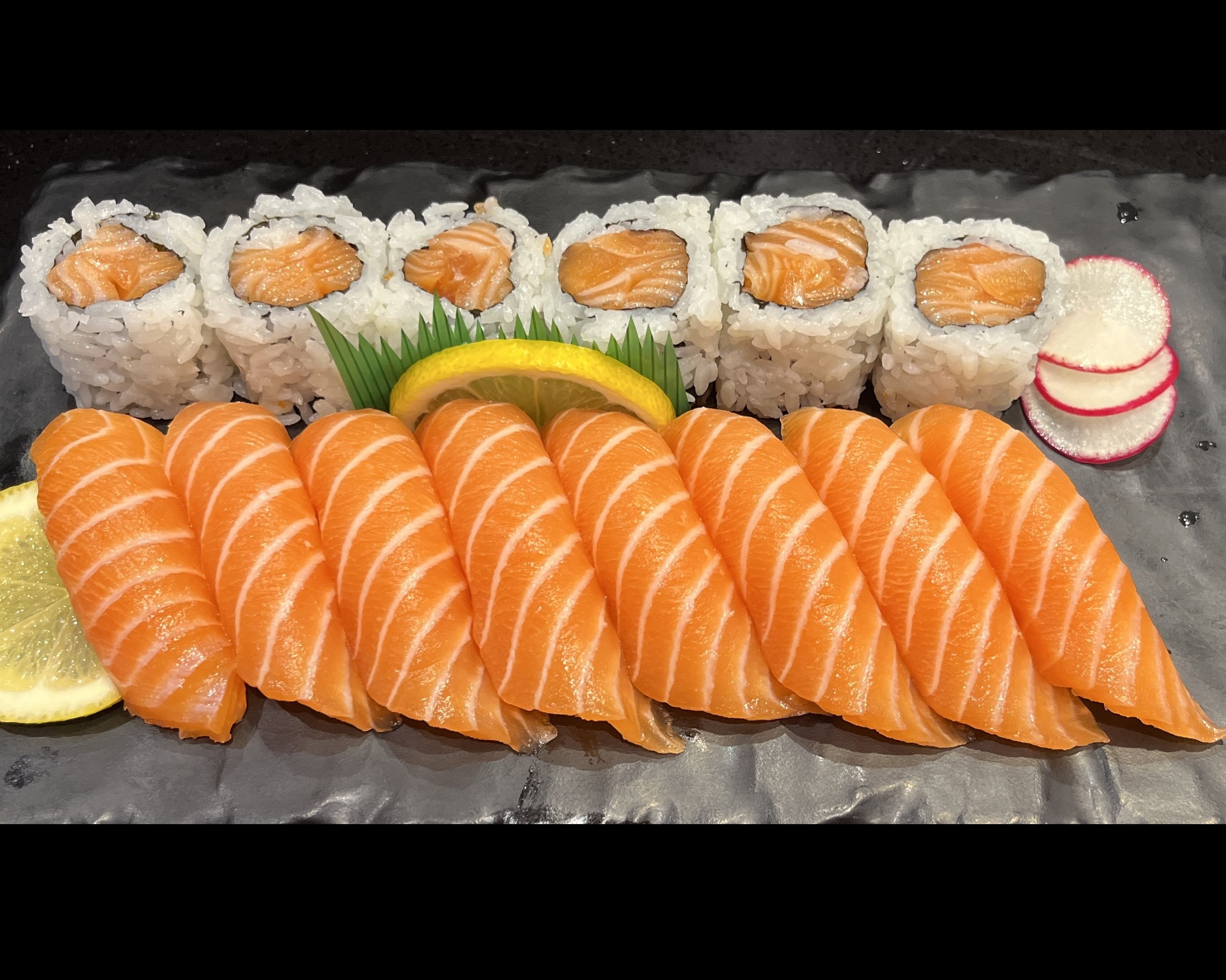 5pcs salmon sashimi, 4pcs nigiri sushi, 6pcs California maki
