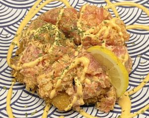 Diced tuna, avocado, tomato with garlic ponzu drizzle